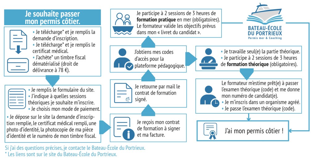 Pour vous inscrire, vous devrez avoir suivi le temps de formation théorique minimum de 5 h auprès de votre bateau-école et celui-ci devra indiquer sur votre dossier que vous êtes prêt. Nous vous communiquerons alors votre numéro « OEDIPP » nécessaire à votre inscription.